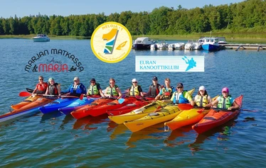 Varusteet: kajakit ja kanootit, liivit, aukkopeitteet, melat, kellukkeet kanooteissa ja kajakeissa, kypärät