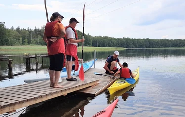 Kajakkiin nouseminen sekä kajakista poistuminen laiturille ja luonnonrantaan
