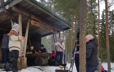 Säädettävät lumikengät saat retken vetäjältä. Kengiksi sopivat hyvin talvikengät tai vaelluskengät. Niissä olisi kuitenkin hyvä olla pitkähköt varret. Ota mukaasi omat sauvat jos omistat.